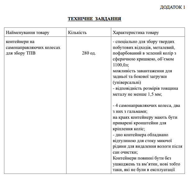 Договор был заключен на сумму 1 миллион 794 тысячи 800 гривен, по 6,4 тысячи гривен за один контейнер для ТБО.