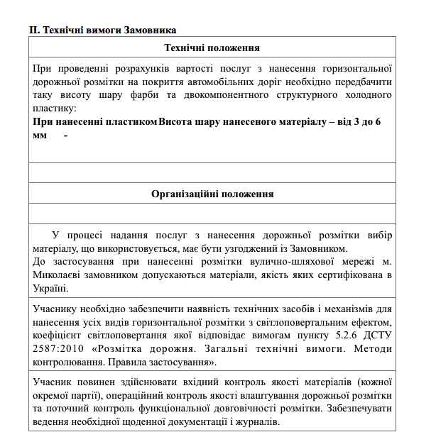 Качество и предоставление указанных услуг должны соответствовать требованиям ДСТУ 2587:2010 «Безопасность Дорожного движения. РАЗМЕТКА ДОРОЖНАЯ. Общие технические требования. Методы контроля. Правила Применения».