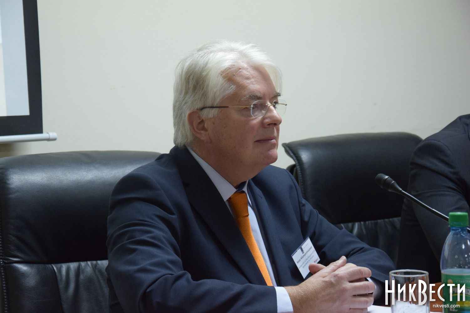 Сегодня, 12 октября, в здании Николаевской облгосадминистрации состоялась расширенная встреча руководства области и города с Послом Королевства Нидерландов в Украине Кейсом Кломпенхаувером, а также с представителями Посольства и нидерландских компаний, сообщает корреспондент НикВестей.