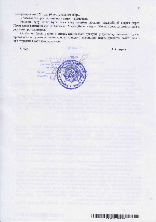 Соответствующее решение суда размещено на сайте движения "Украинский выбор — право народа".