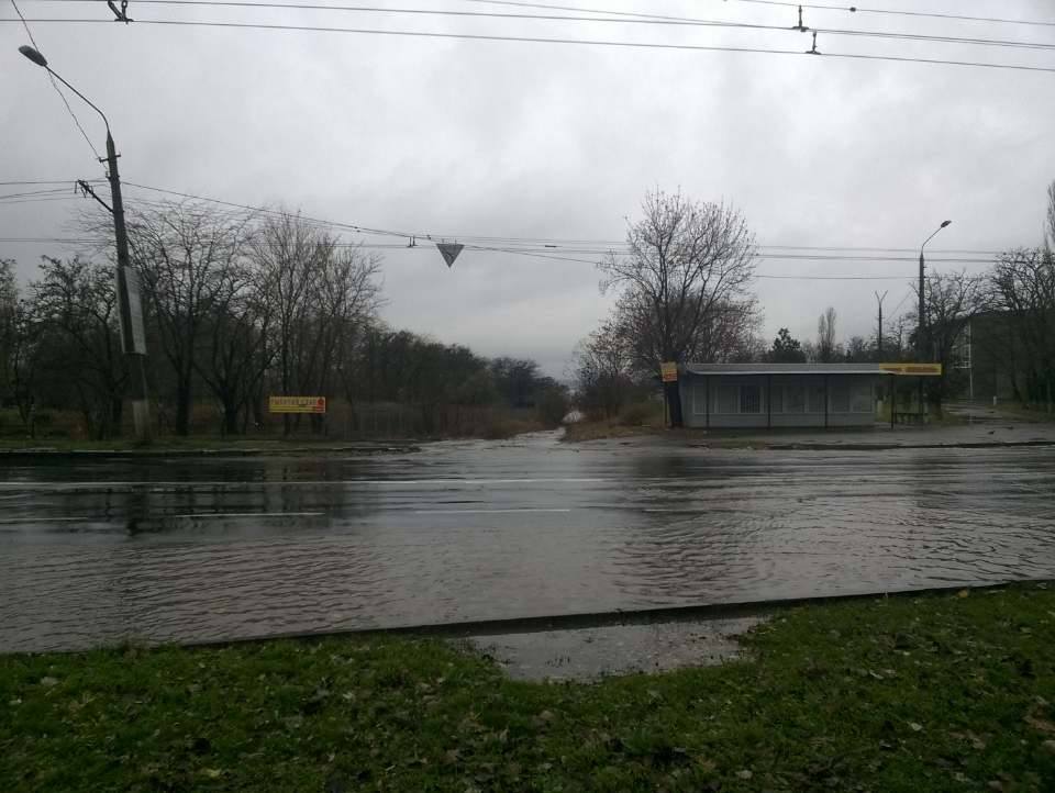 Залита проезжая часть и проспекта Героев Украины, фото возле остановки «Плавбассейн» опубликовал в Facebook Александр Одегов.