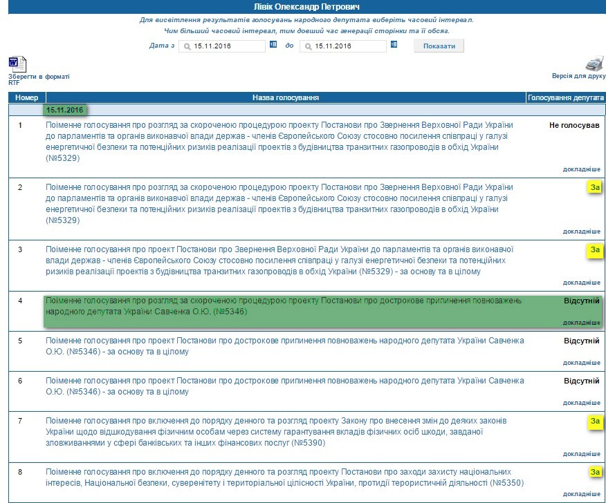 Результаты поименного голосования опубликовали на официальном сайте Верховной Рады Украины.