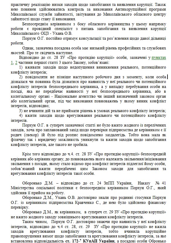 Руководитель Николаевского областного центра занятости Дмитрий Оборонько, чтобы удержаться на должности, трудоустроил родственницу заместителя главы Государственной службы занятости Сергея Кравченко Елену Порхун в Первомайское районное отделение заместителем директора.