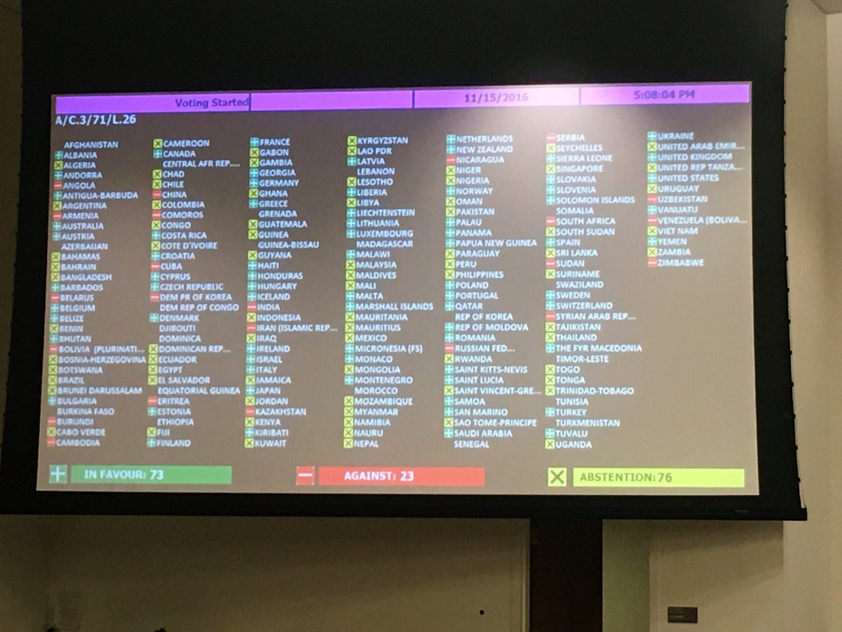 Против проголосовали 23 страны, среди которых Беларусь и Россия, передает Украинская правда.