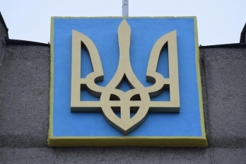 Теперь сам тризуб стал желтого цвета на синем фоне. Красить начали еще вчера.