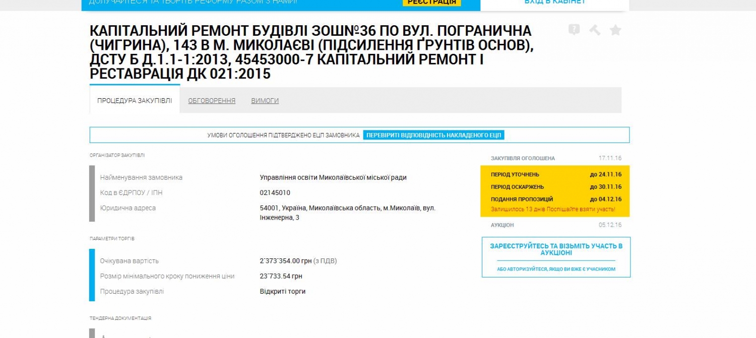В подтверждение оппозиционер приводит дефектный акт обследования помещений, который зафиксирован в системе публичных закупок ProZorro.