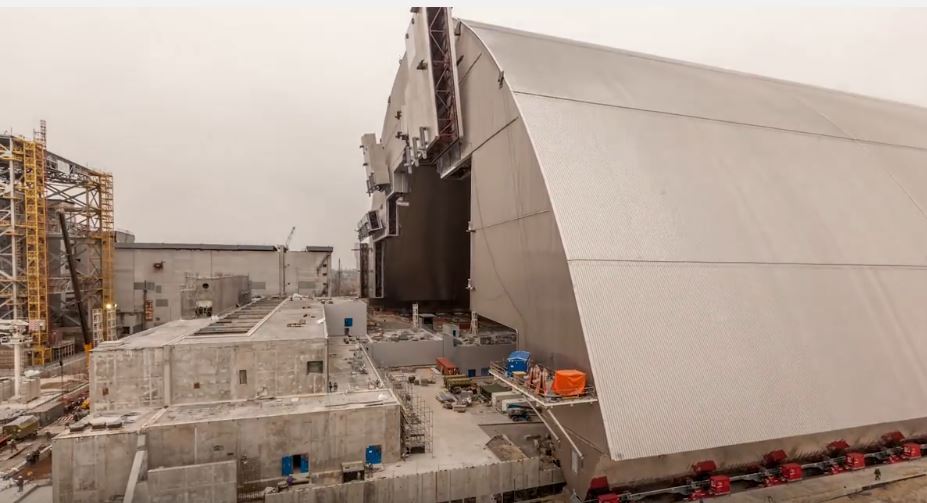 Министерство экологии обнародовало видео установления саркофага над 4-м энергоблоком Чернобыльской АЭС. Специалисты 30-ти стран работали над крупнейшей подвижной конструкции в мире. Она простирается на 110 метров в высоту, 257 метров в ширину и 164 метра в длину.