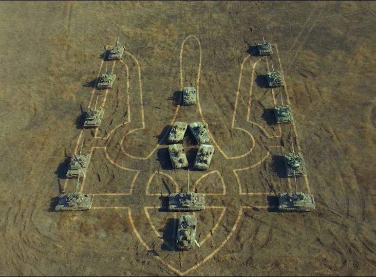 Под Николаевом военные из танков и БМП выложили Герб Украины