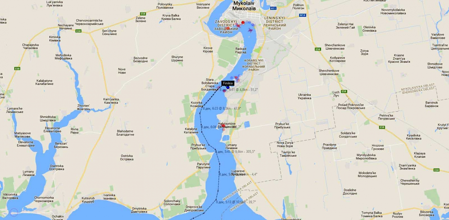 8 декабря в николаевский специализированный порт «Октябрьск» (с октября переименован в рамках декоммунизации и ныне называется Государственное предприятие «Стивидорная компания «Ольвия») прибыл под погрузку сирийский балкер FINIKIA, IMO: 9385233, Flag: Syria, принадлежащий правительству Сирии. Данное судно включено в «сирийский» санкционный список Минфина США.