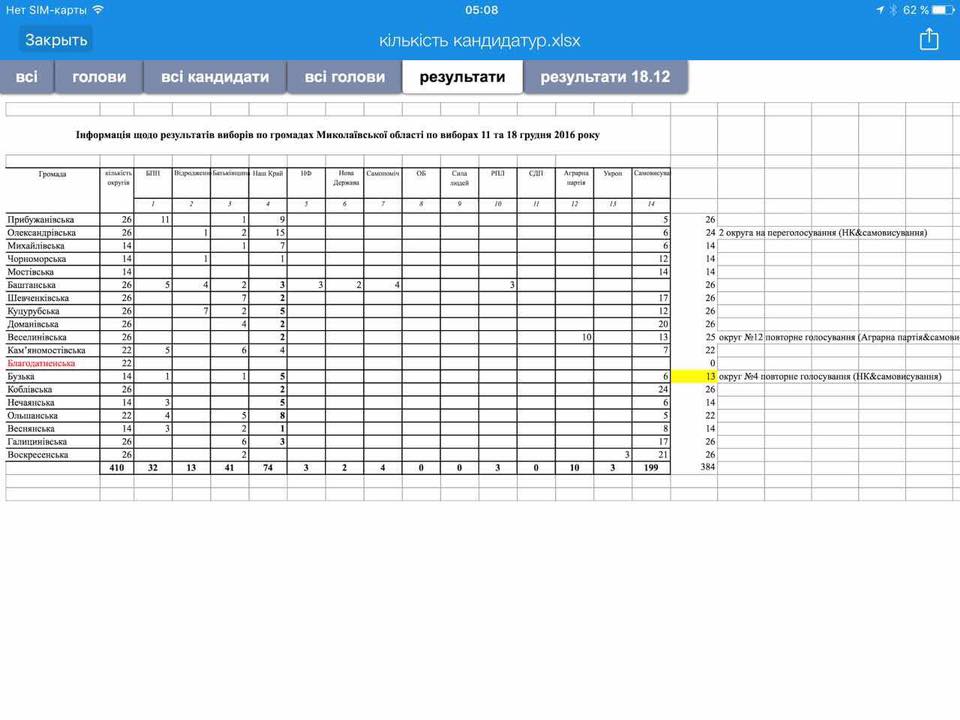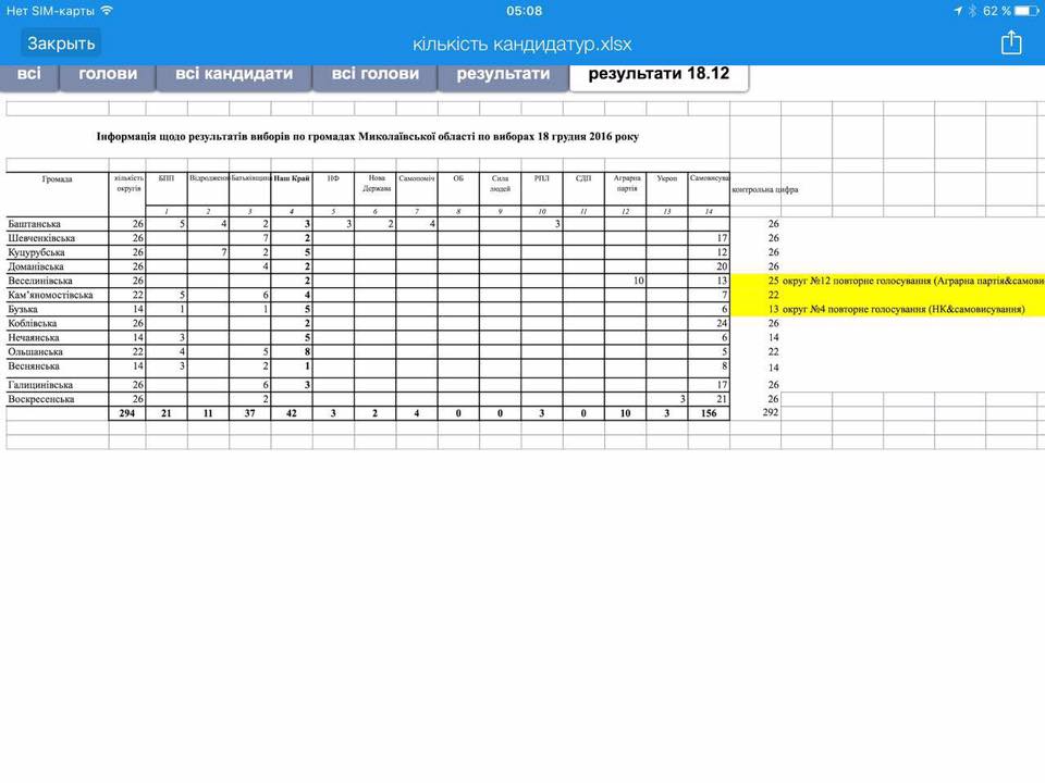 По итогам голосования на выборах в объединенные территориальные общины Николаевской области 11-го и 18-го декабря партия «Наш край» одержала наибольшее количество голосов избирателей.
