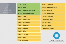Показатели Днепра, Одессы, Житомира опустились по сравнению с рейтингом 2015 года. Лидерами уже на протяжении 3 лет являются Луцк, Ивано-Франковск, Винница и Киев.