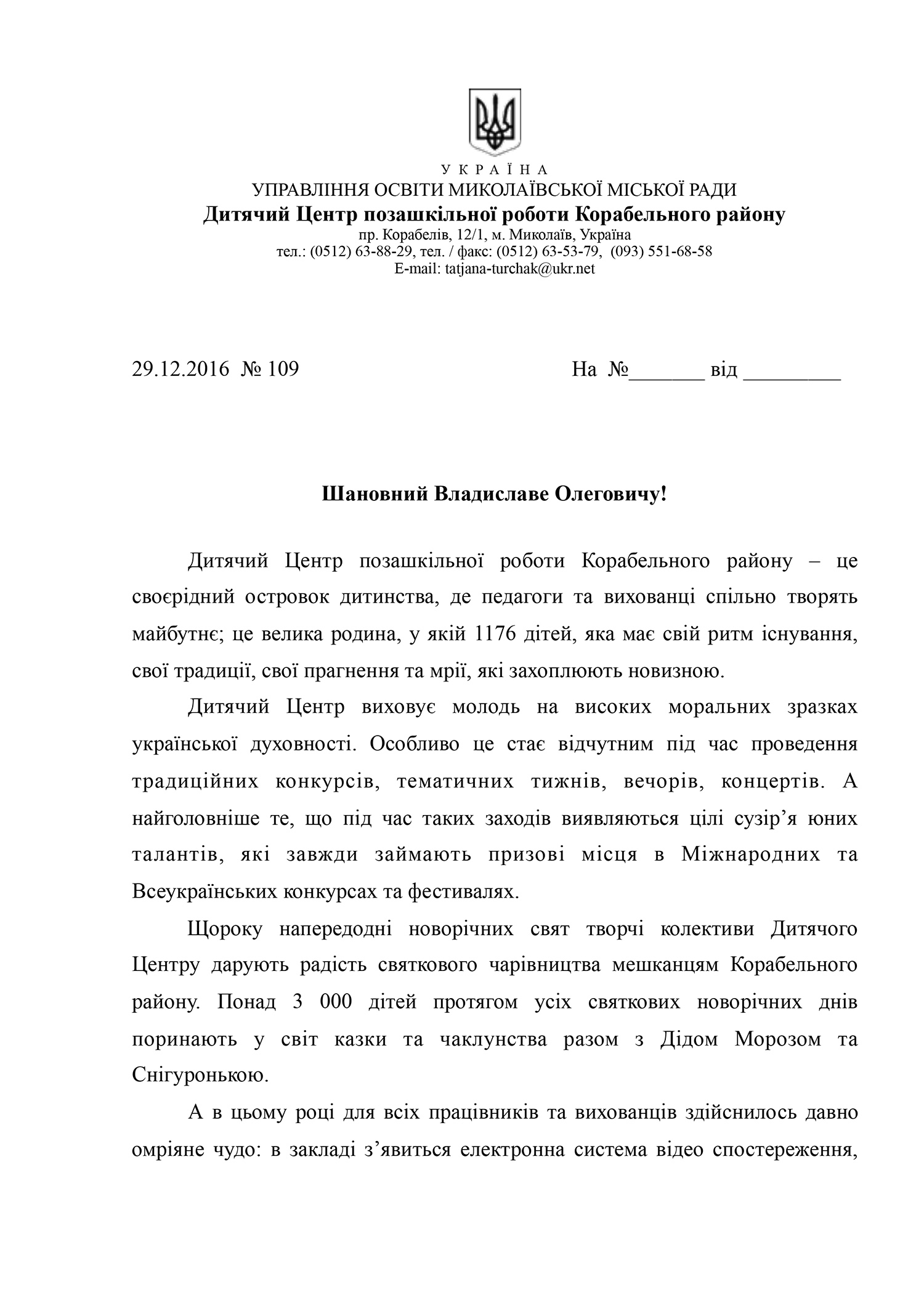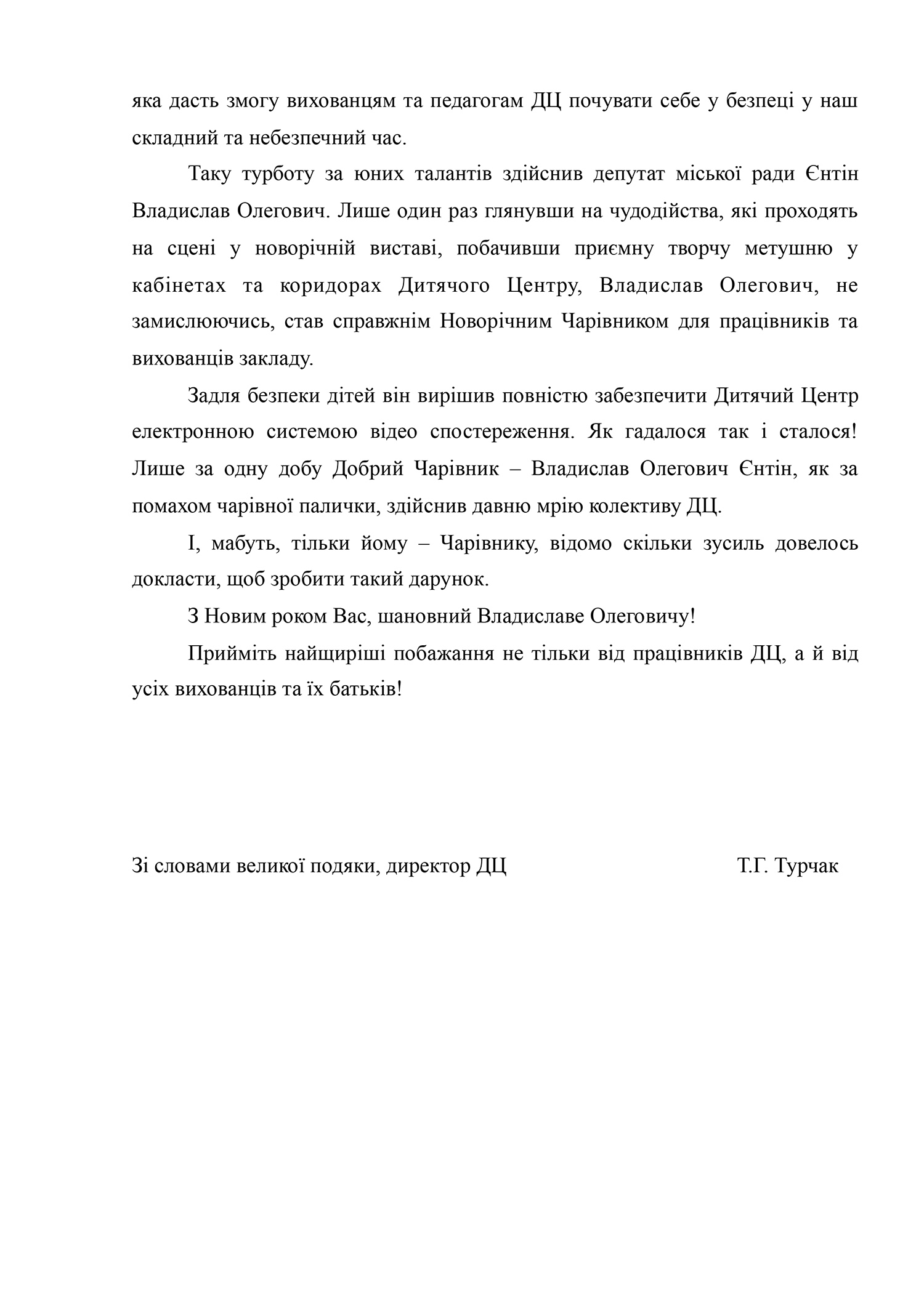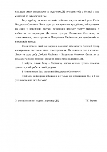 Руководство Детского центра от имени трудового и родительского коллективов выражает благодарность Владиславу Ентину в обеспечении безопасного досуга детей.