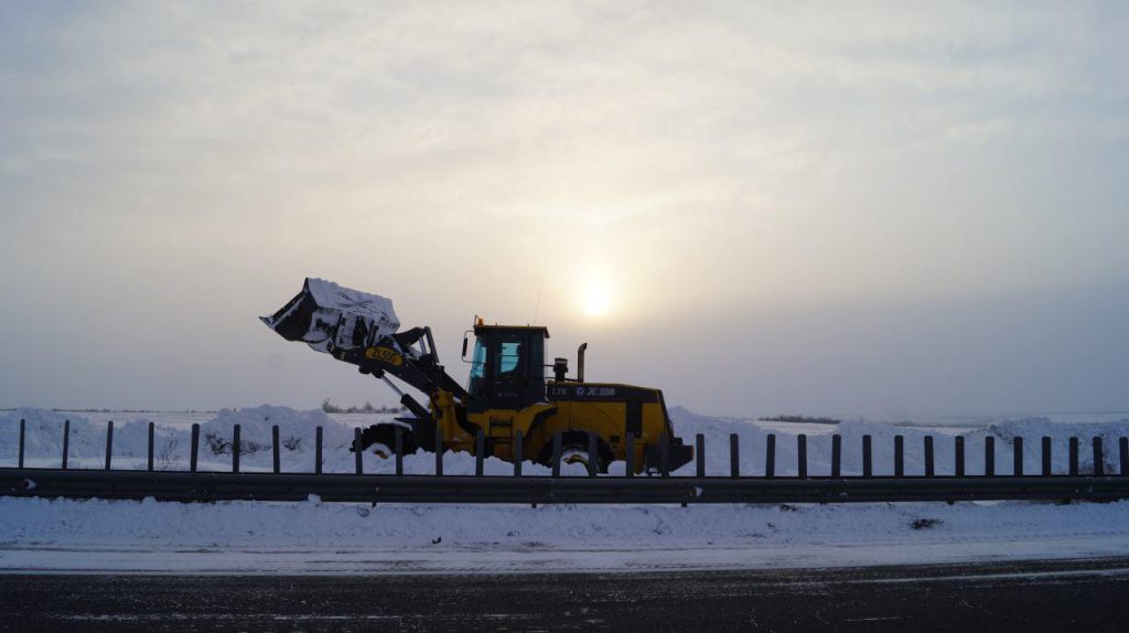 8 января весь день с помощью строительной техники работники дорожных служб чистили трассу по направлению из Херсона в Николаев.