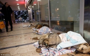 Из-за аномально сильных морозов владельцы турецких магазинов и кафе в одном из районов Стамбула разрешили пускать внутрь бездомных животных.