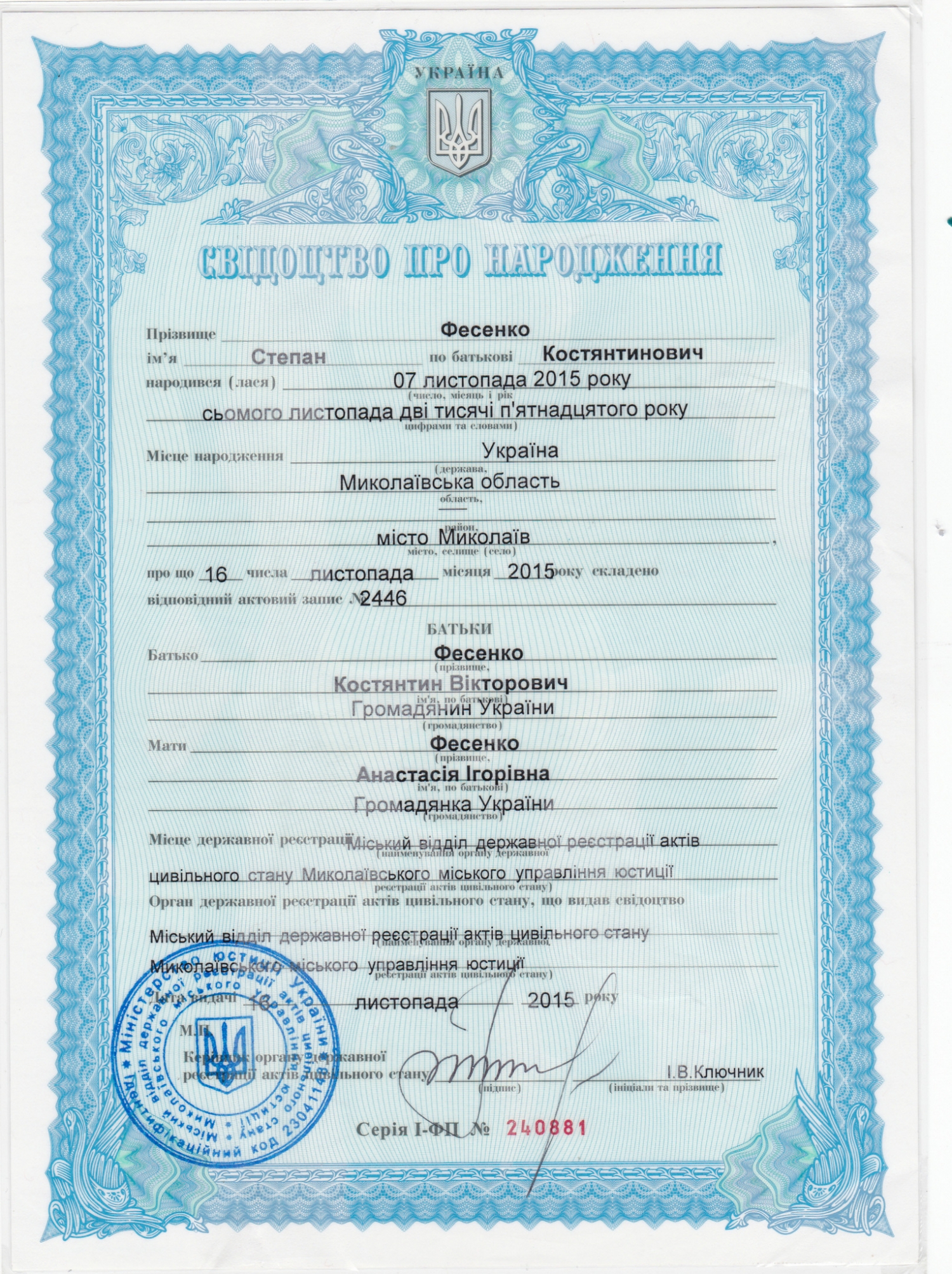 – Домой с роддома пришли, сразу заметили, что с ребёнком что-то не то. Он постоянно запрокидывал голову назад. Мы бегали по разным врачам. Нам ставили задержку физического развития. Плохо держал голову, слабые мышцы. А в семь месяцев дедушка заметил, что Стёпа не отреагировал на сильный сигнал машины. Мы сразу поехали в Киев в институт отоларингологии им. Проф. Коломийченка на обследование. Там подтвердился страшный для нас диагноз: двухсторонняя нейросенсорная глухота 4 степени, – рассказала Анастасия Фесенко.