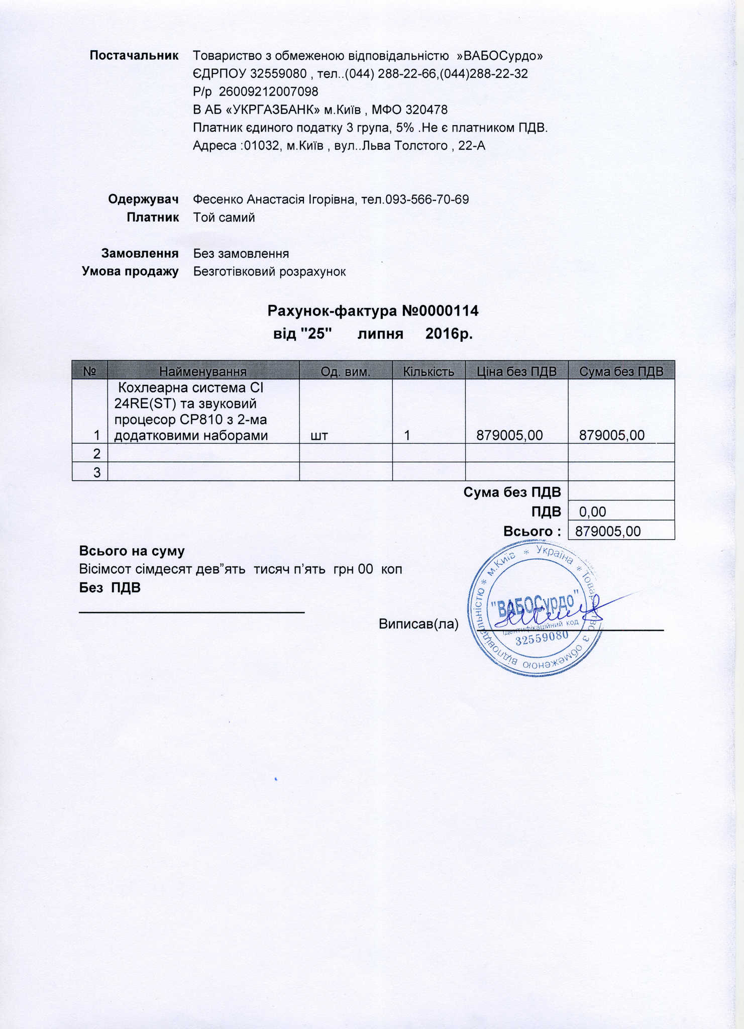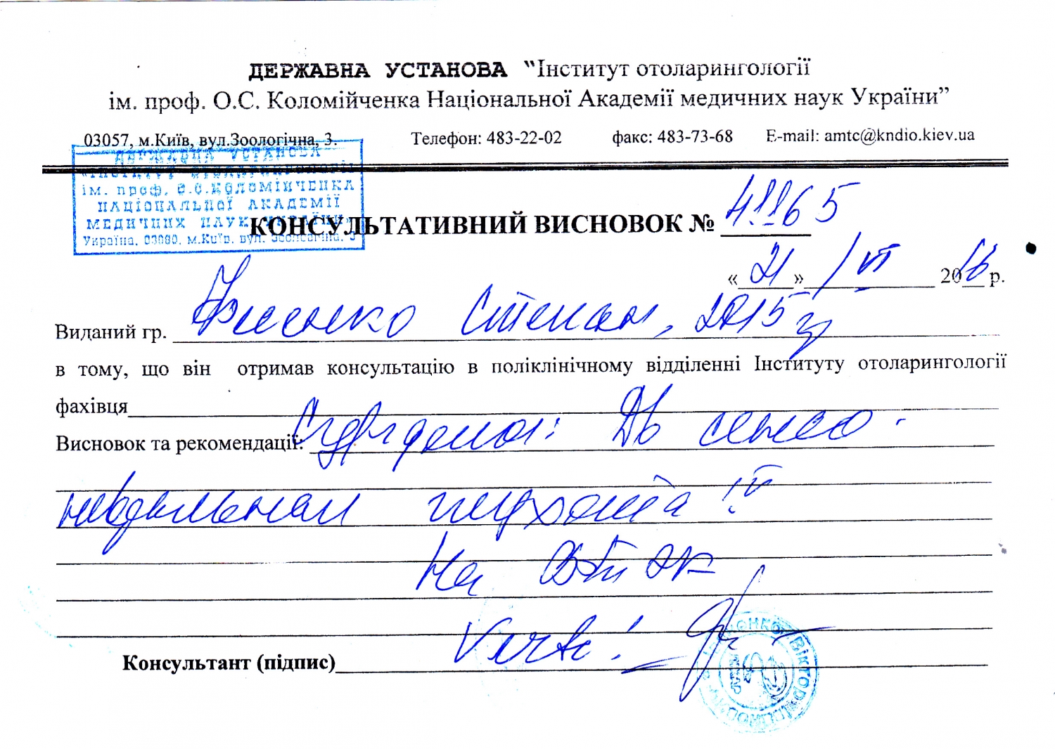 В июле месяце 2016 года родители купили слуховой аппарат (стоимостью 16 200 гривен) сверхмощный, который также посоветовали врачи. Но результата он не принес.