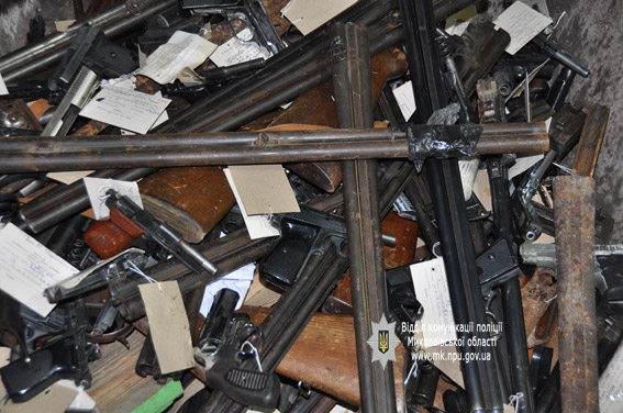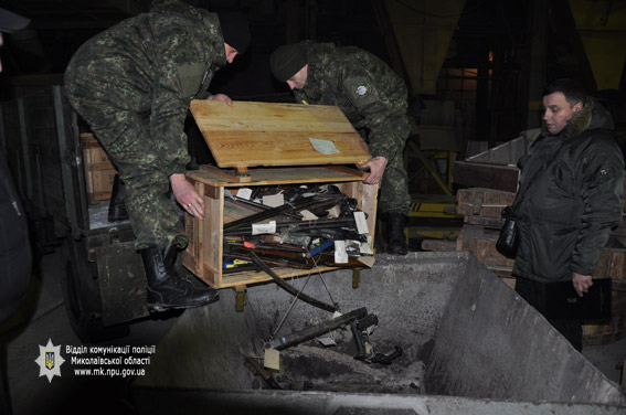 На утилизацию были направлены различные образцы огнестрельного и холодного оружия, а также боеприпасы: охотничьи ружья, газовые и пневматические пистолеты, обрезы, ножи, нунчаки, кастеты, самодельные устройства для стрельбы, сообщает отдел коммуникации Главного управления Национальной полиции в Николаевской области.