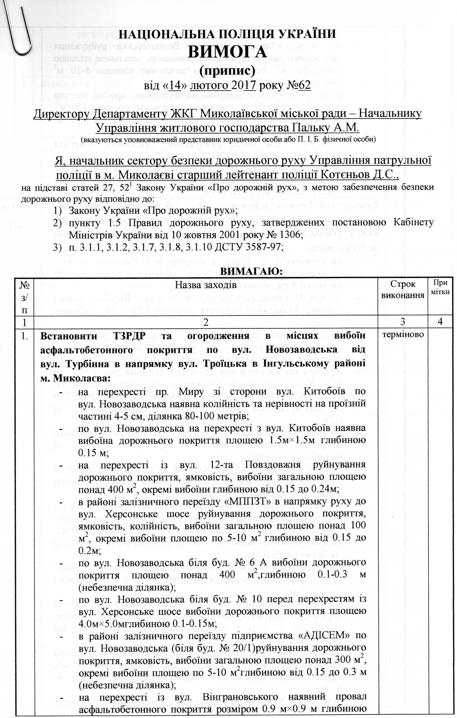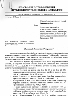 Работники сектора безопасности дорожного движения Управления патрульной полиции в городе Николаеве проверили как Департамент ЖКХ выполняет предписание об установке отсутствующих люков колодцев и решеток ливневой канализации по улице Новозаводской. Эта улица определена горисполком для движения большегрузных транспортных средств.