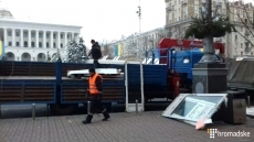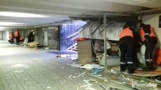 В Киеве начали сносить МАФы, которые, как утверждают коммунальщики, незаконно расположены в подземных переходах возле станции метро Майдан Независимости.