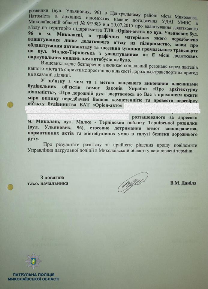 При проведении обследования улиц и дорог Николаева патрульные полицейские выявили факт незаконного строительства магазина. При этом строительство его парковочных «карманов» было начато непосредственно на месте существующей остановки общественного транспорта.