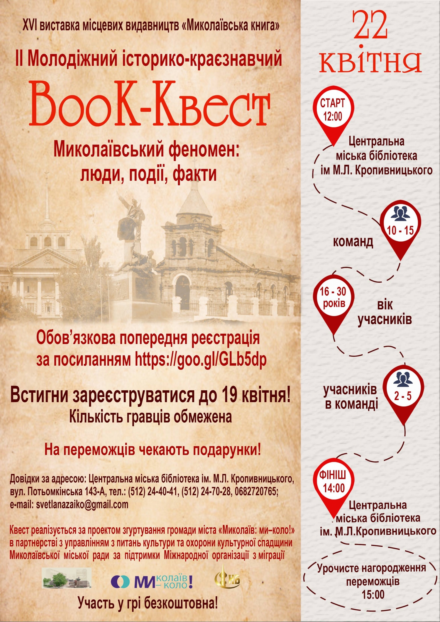 Организаторы Второго молодежного историко-краеведческого BooK-Квеста «Николаевский феномен: люди, события, факты» приглашают молодых николаевцев в возрасте от 16 до 30 лет принять участие в захватывающем мероприятии.