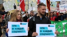 “Севернее Кореи” - так звучит главный лозунг Монстрации в этом году. Надпись была выполнена на зеленом баннере, который несли во главе колонны. Многие участники шествия держали в руках плакаты, отсылающие к последним события в стране, например, “У России два врага, Telegram и курага” или “VPN в каждый соцпакет”.