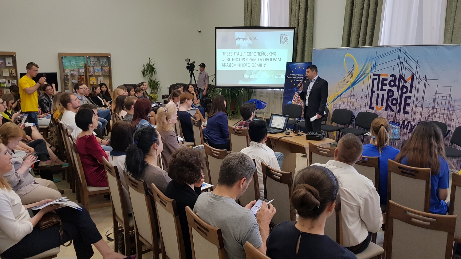 Эксперты региональной инициативы Представительства ЕС в Украине – Team Europe Mykolaiv – презентовали европейские образовательные программы и программы академического обмена. Они рассказали о том, как можно учиться за границей, зачем европейское образование украинской молодежи и что делать после того, как получишь заветный диплом. Мероприятие проходило в Николаевской областной универсальной научной библиотеке им. А. Гмырева.