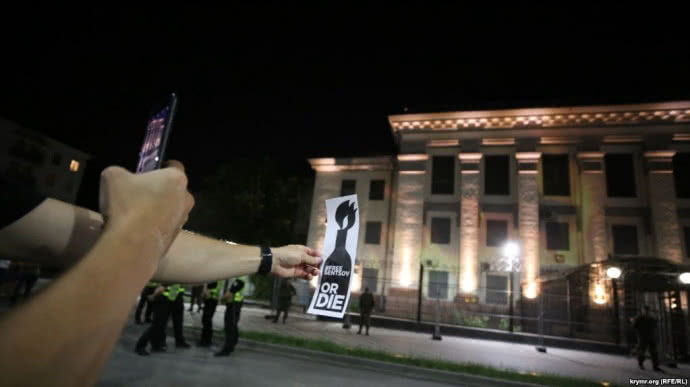 В Киеве, под зданием посольства России, прошла акция в поддержку Сенцова