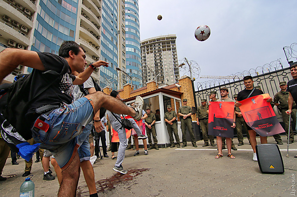 В Одессе активисты забросали «кровавыми» мячами Российское консульство