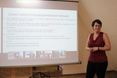 Волонтер рассказала о том, как в Америке организована система подбора работы, как проходит собеседование с работодателем и как составляют резюме. Присутствующие узнали о социальных услугах в США, в частности для молодежи, людей с инвалидностью и ветеранов. Вопросов возникло немало, ведь очень интересно узнать о таких особенностях непосредственно от американки, которая специализируется на социальном направлении.