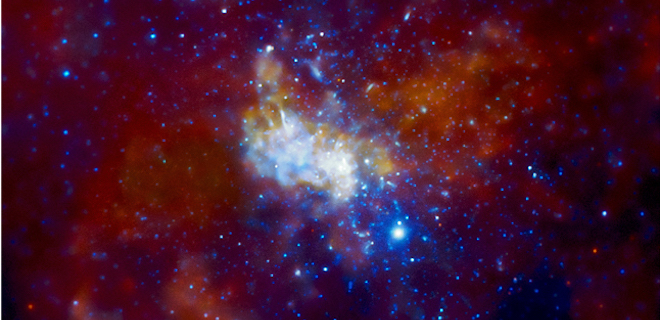 В центре Млечного Пути расположена крупная черная дыра, которую называют Sgr A*. Она примерно в 4 миллиона раз тяжелее Солнца и находится в 26 тысячах световых лет от Земли.