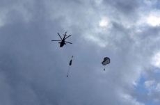 Военнослужащие отдельной десантно-штурмовой бригады ДШВ продолжают выполнять программу прыжков с парашютом с вертолета Ми-8 с высоты 600 метров с оружием и снаряжением. Кроме этого, свой первый шаг в открытую рампу сделали «перворазники» с высоты 800 метров.