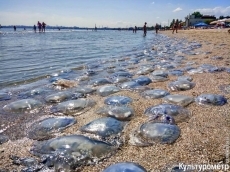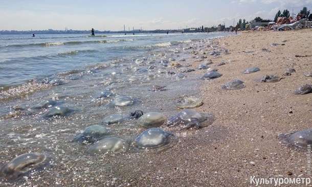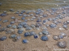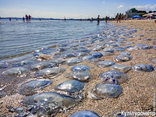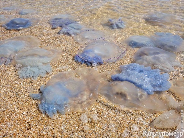 Из-за нашествия морских существ отдыхающие не могут искупаться в море.