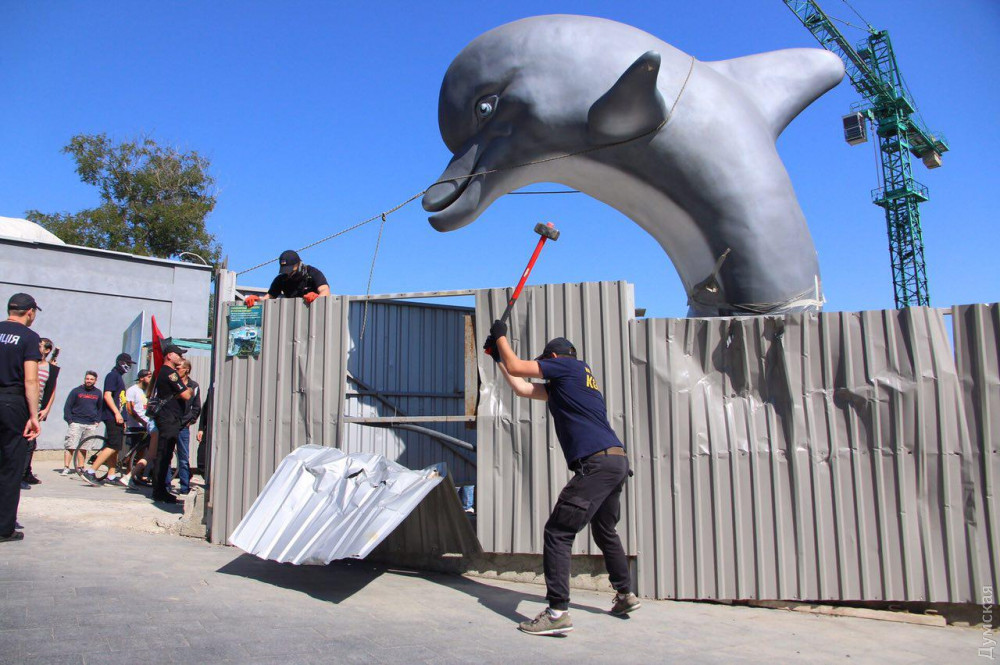 — В 12:50 в действия активистов вмешалась полиция. Правоохранители встали кордоном между активистами и стройкой, но протестующие обошли объект со стороны моря и начали ломать забор уже там. В 13:03 полиция перестроилась и снова встала между стройкой и протестующими. В ход пошли газовые баллончики и петарды. В 13:25 активисты принесли выломанные секции забора ко входу в дельфинарий, после чего разошлись. Сама стройка не пострадала. В 16:00 строители восстановили снесенный активистами забор, - сообщает издание.