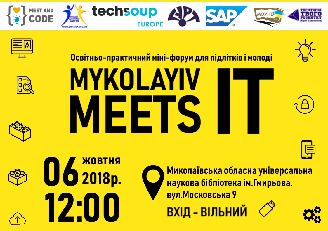 В субботу, 6 октября, для юных жителей и гостей нашего города пройдет особое образовательное мероприятие - Мини-форум Mykolayiv meets IT (Николаев встречает IT - ред.). Рассчитан форум на старшеклассников, студентов и молодых родителей.