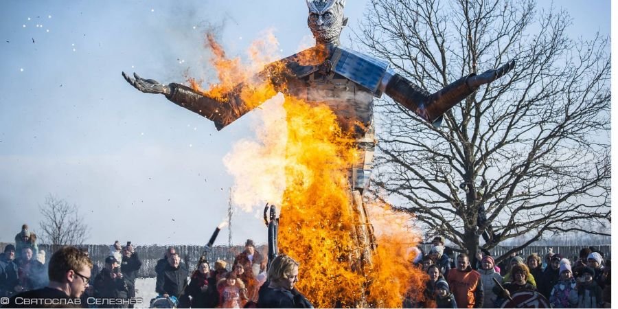 В Липецкой области в честь Масленицы сожгли чучело Короля ночи — персонажа из Игры престолов, который возглавляет армию мертвых и хочет уничтожить человечество.