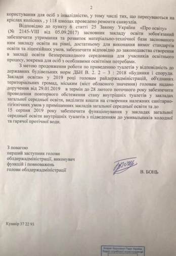 Тарас Креминь сообщил, что к новому 2019-2020 учебному году ситуация с санузлами должна быть коренным образом исправлена.