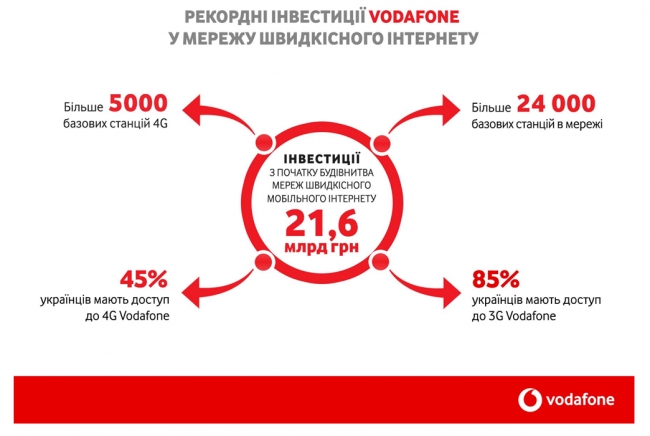 «Vodafone Украина» вложил рекордные инвестиции в 4G: более 21 миллиарда гривен