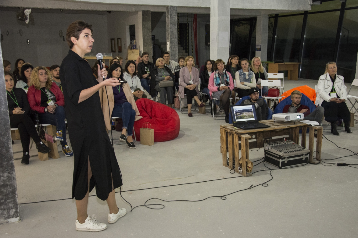 Архитектор и урбанист Анна Помазанная, которая сейчас работает в Берлине, представила 9 успешных практик немецкой столицы, реализованных локальными инициативами как при поддержке властей, так и собственными средствами участников, которое вызвало оживленную дискуссию о возможностях использования подобных механизмов в Украине.