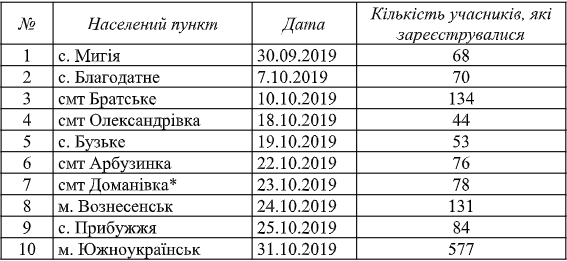 Общественные слушания по рассмотрению материалов по обоснованию безопасности продления срока эксплуатации энергоблока №3 Южно-Украинской АЭС прошли в следующих населенных пунктах: