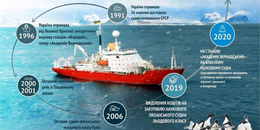 По словам министра образования и науки Анны Новосад, сейчас завершается подготовка программы полярных исследований Украины на 2021−2030 годы, где Кабмин учтет наличие собственного судна.