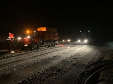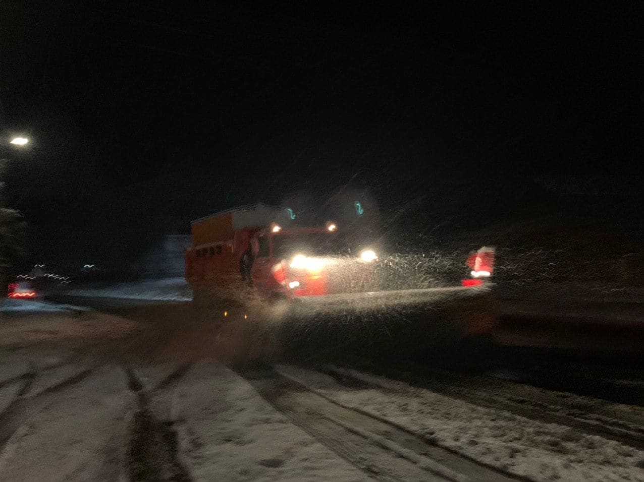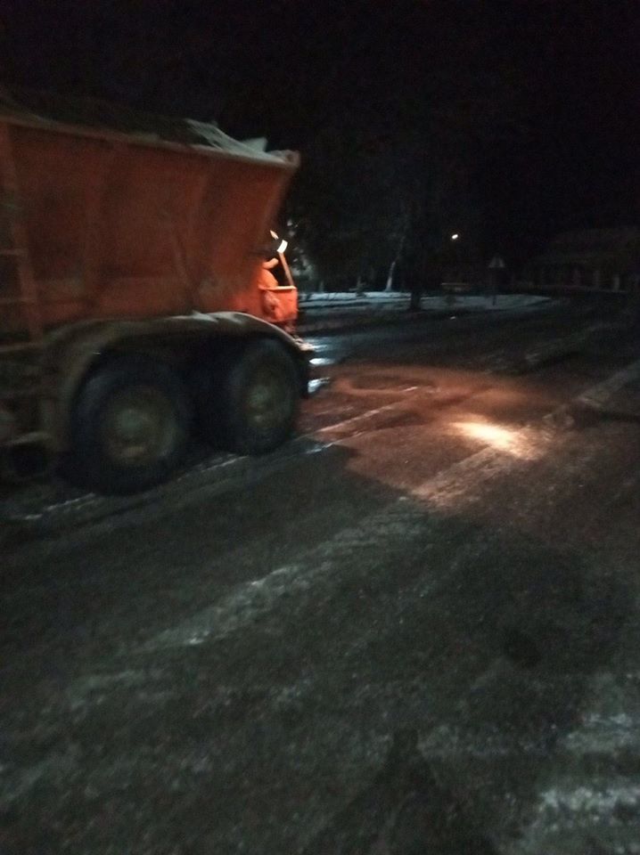 Подрядные предприятия в круглосуточном режиме осуществляют работы по обеспечению безопасного проезда по дорогам области (расчистка дорог от снега и обработки противогололедными материалами дорожного покрытия).