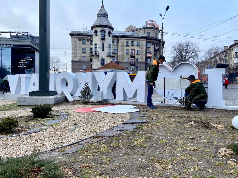 В Николаеве, 27 февраля, установили на место поврежденное сердце арт-объекта «I LOVE MYKOLAIV».