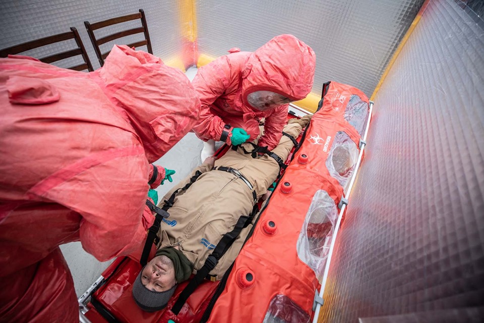 Он также добавил, что на судне есть изоляционная капсула BIO-BAG EBV-30/40, биозащитные комплекты, обеззараживающий душ, изоляционная камера и специальный модуль, в котором фиксируется капсула во время полета.