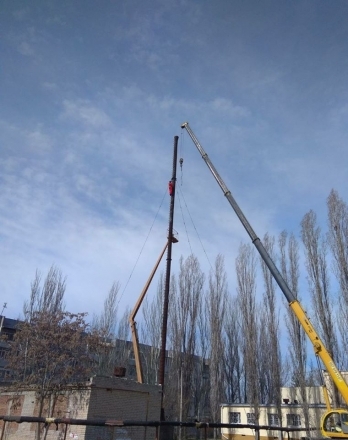 В Николаеве сотрудники «теплоэнерго» демонтировали 36-метровую дымовую трубу, которая угрожала безопасности школьников