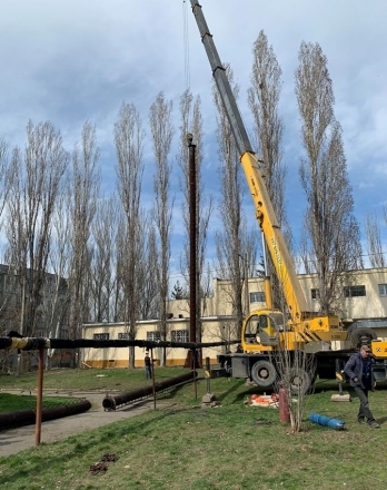 17 марта специалисты коммунального предприятия «Николаевоблтеплоэнерго» демонтировали 36-метровую трубу с нерабочей котельной возле школы № 19.