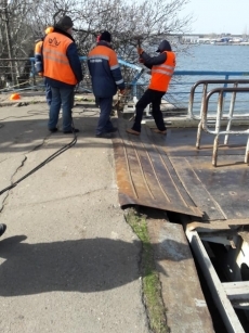 — Сейчас выполнен первый этап по восстановлению пешеходного понтонного моста — при помощи крана мост установлен на подвижные опоры и закреплен на берегу. Далее будут установлены донные якорея, будут отремонтированы ригельные замки и восстановлены перильные ограждения моста, - сказано в сообщении.