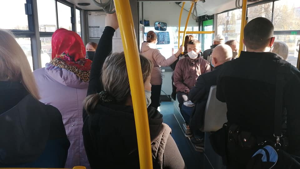 В общественном транспорте Николаева водители набирают стоячих пассажиров без пропусков.