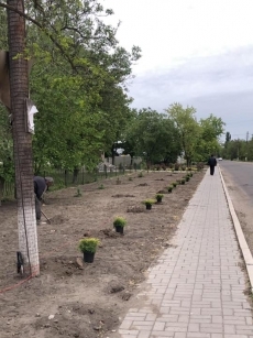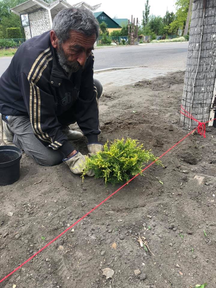 Глава Мешково-Погореловской ОТГ Андрей Ботанин показал процесс высадки декоративных кустарников на одной из улиц села и призвал жителей громад следовать его примеру.