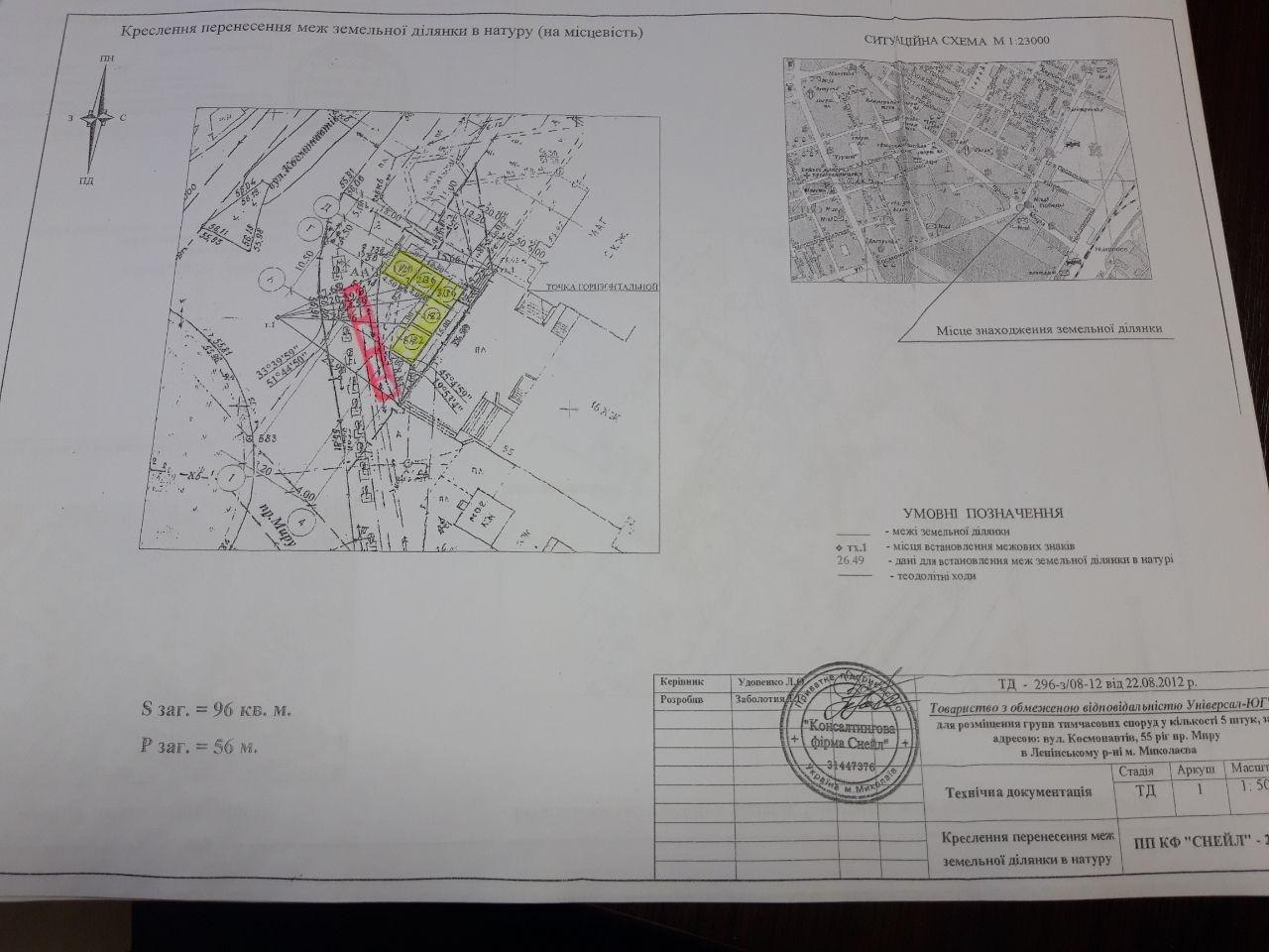 14 мая Хозяйственный суд Николаевской области удовлетворил заявление ООО «Универсал-Юг» об обеспечении иска. Хотя, еще 8 мая суд принял противоположное решение. Сейчас Николаевскому городскому совету и его исполнительным органам запрещено осуществлять любые действия для демонтажа стационарных временных сооружений на земельном участке по адресу: улица Космонавтов, 55 угол проспекта Мира.